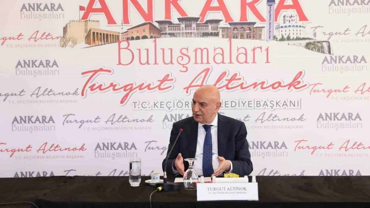 Keçiören Belediye Başkanı Turgut Altınok yaptığı konuşmada, “1994’te aday oldum, göreve belediye başkanı seçildim. Keçiören’de 6 haneden 5’i gecekonduda yaşıyordu. Keçiören, Türkiye’de en hızlı şekilde kendi kendine dönüşen şehirdir. Şehrimizdeki dönüşümde TOKİ yapısı da yoktur. Yapılarımıza mimari yapı projesi zorunluluğu getirerek, gecekondudan dönüşen yapıların mimarisinde o yapıları uygulattık. Yapı estetiği taş ve ahşap estetiği zorunluluğumuz vardı. Daha sonra uygulama bırakıldı. Uygulama devam etseydi, Keçiören daha beyaz bir şehir olacaktı. Şehir ve kentlerin ruhu ve kimliği olsun diyoruz ama şu anki şehirlerin ruhu ve kimliği maalesef yok. Ancak biz görev süremizde eser ve hizmetlerimizde şehrimizin gerdanlıklarını yaptık. Bunları da kültürel benliğimizi içinde barındıran, estetik bir mimari anlayışıyla inşa ettik” ifadelerini kullandı.