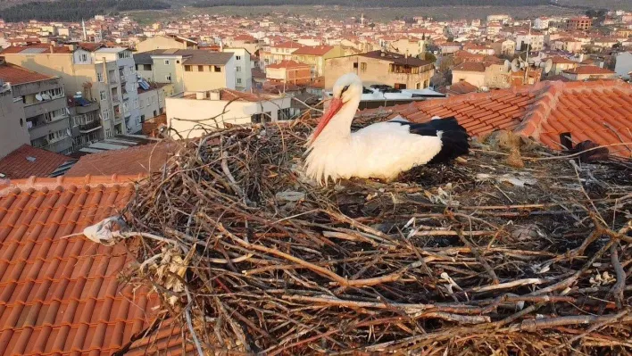 Balıkesir’in Sındırgı ilçesinin sembolü, turizm logosunun simgesi olan ve vatandaşlar tarafından "Sağdıç" adı verilen leylek, bu yıl da belediye binasındaki yuvasına yerleşti.