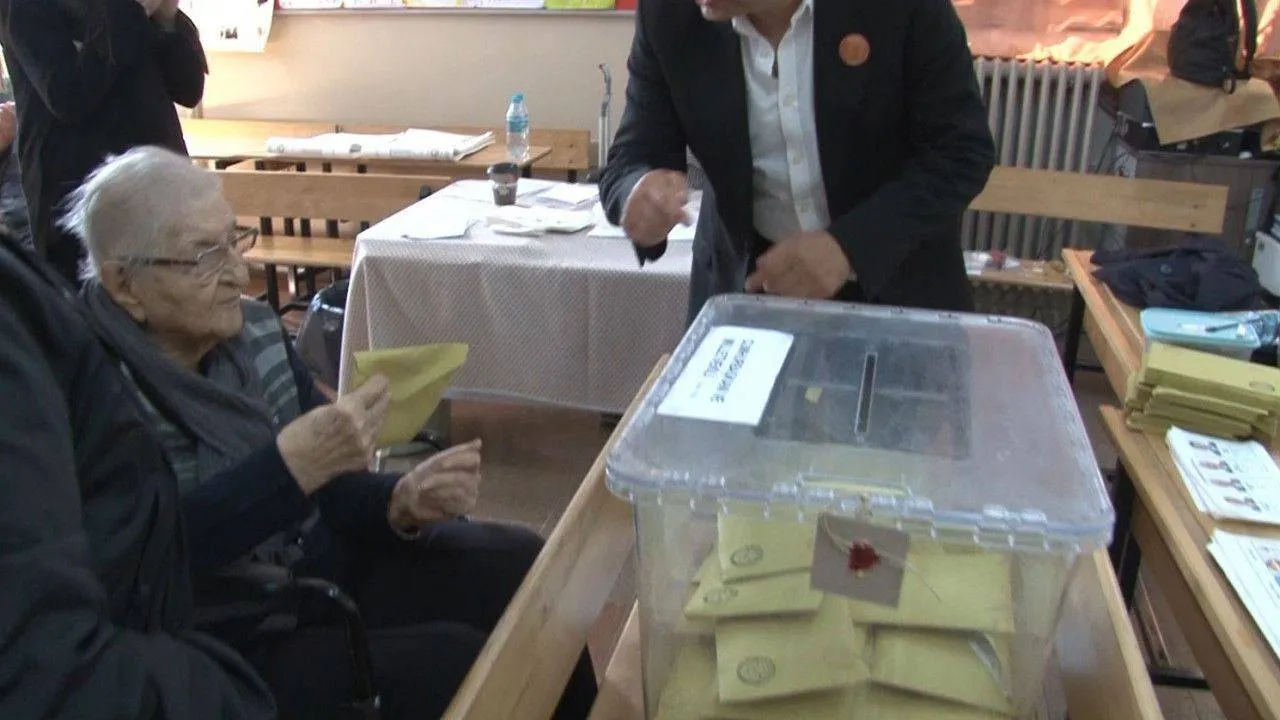 Cumhurbaşkanı ve 28. Dönem Milletvekilliği Genel Seçimlerinde İstanbul’da oy verme işlemi devam ediyor. Seçmenler sabahın erken saatlerinden itibaren sandık başına giderken, yoğun bir katılımın olduğu seçimlerde yaşlı vatandaşlar da vatandaşlık görevini yerine getiriyor. 1923 doğumlu Fatma Perihan Kutlar, Sarıyer Yeniköy’de bulunan Yeniköy Ortaokulu’nda oy kullandı. Özel servis aracıyla okula getirilen Fatma nine, görevliler eşliğinde tekerlekli sandalye ile oy kullanacağı