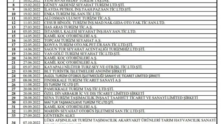 Emniyet Genel Müdürlüğü tarafından "kusurlu olarak ölümlü trafik kazalarına karışan şehirlerarası yolcu otobüsleri"ne ilişkin yapılan açıklamada, 1 Ocak-27 Kasım 2022 tarihleri arasında meydana gelen şehirlerarası tarifeli ve tarifesiz yolcu taşımacılığı yapan otobüslerin kusurlu olarak karışmış olduğu 43 ölümlü trafik kazasında olay yerinde 83 can kaybı meydana geldiği belirtildi. Açıklamada, ölümlü trafik kazalarına 36 farklı otobüs firmasının karıştığının tespit edildiği ve ilk sırada 6 ölümlü ve 18 yaralanmalı trafik kazasıyla Kamil Koç Otobüsleri AŞ firmasının yer aldığı vurgulandı. Açıklamada, yolcu taşımacılığı yapan otobüslerin trafik kolluğunca hem terminal çıkışı öncesi hem de karayolu üzerinde denetime tabi tutulduğu belirtilerek, sürücülerin hız, çalışma/dinlenme süreleri ile seyir halinde cep telefonu kullanımı başta olmak üzere trafik güvenliğine uymaları, yolcuların da seyahat süresince emniyet kemeri takmaları konusunda bilgilendirildiğine dikkat çekilerek şöyle denildi: