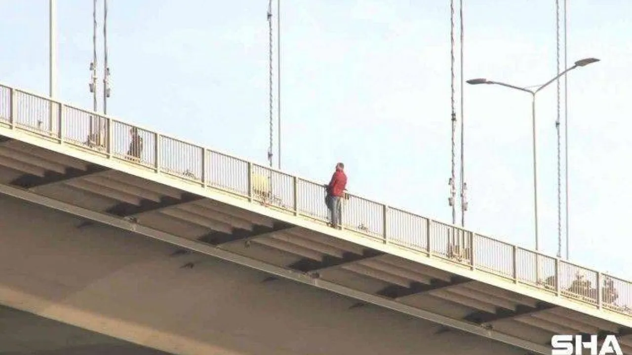 15 Temmuz Şehitler Köprüsü'nde bir kişi intihar etmek için korkuluğa çıktı. Şahıs yaklaşık 1 buçuk saat sonra ikna edilirken, köprü üzerinde trafik oluştu.