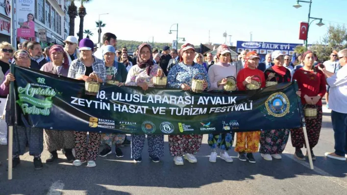 Balıkesir'in Ayvalık ilçesinde, 18. Ayvalık Uluslararası Zeytin Hasat Festivali 'Zeytine Minnet' yürüyüşü ile başladı.