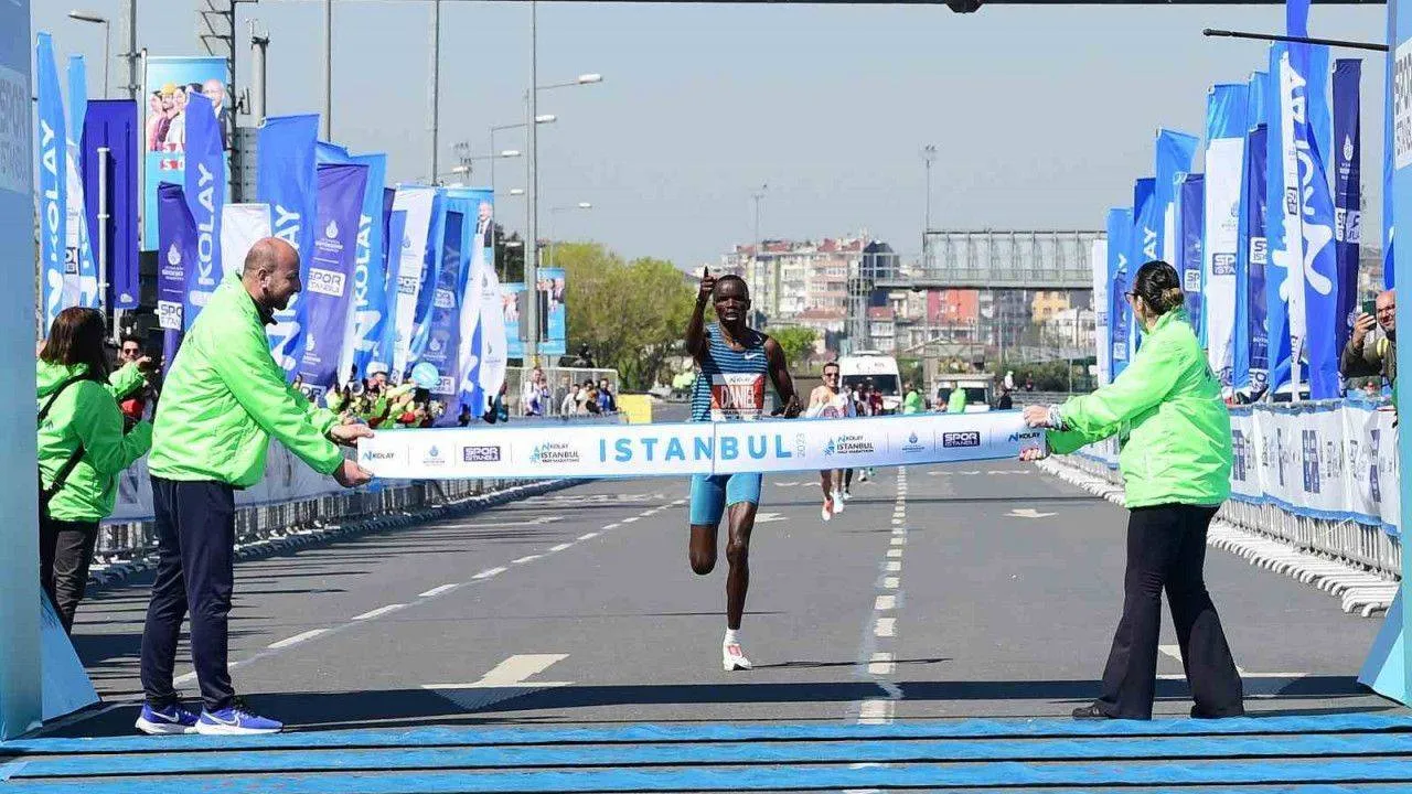 Kenyalı atlet Ebenyo bitiş çizgisini göğüsledi