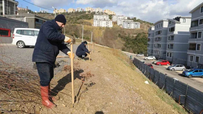 İzmit Belediyesi boş alanları yeşillendirerek 118 fidan dikti.