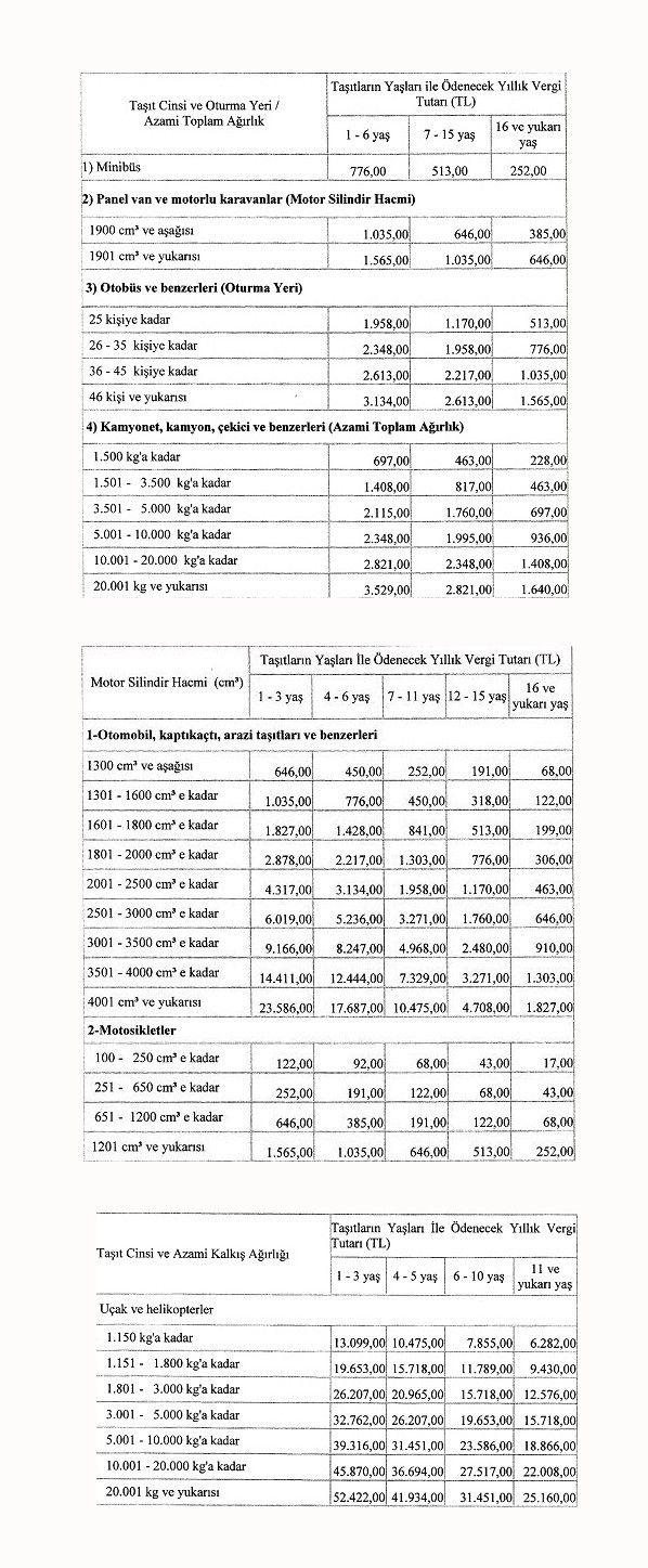 2017 yılında araç sahiplerinden alınacak Motorlu Taşıtlar Vergisi (MTV) şöyle;