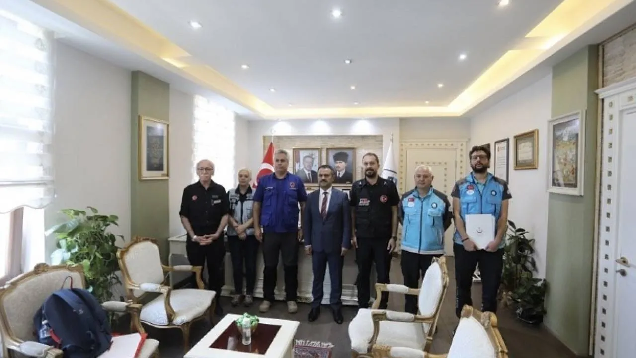 Çanakkale'de 18-22 Eylül 2023 tarihleri arasında Çanakkale'de gerçekleştirilecek MED EU MODEX 2023 tatbikatında görev yapacak dış paydaş temsilcileri Avrupa Birliği Sivil Korunma Ekip üyeleri Marc Olıver Nestler, Marıa Katajisto ve Han Pelster, Vali İlhami Aktaş'ı ziyaret etti.