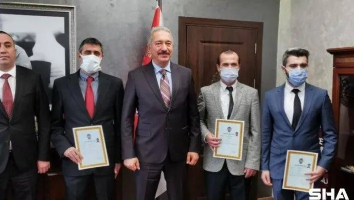 Topaloğlu konuşmasının ardından başarı belgelerini, Asayiş ve Narkotik Şube Müdürü Alper Yılmaz ile birlikte Murat Kılıç, Hasan Tütüncü, Cüneyt Nazlı, Erkan Özturan’a takdim etti.