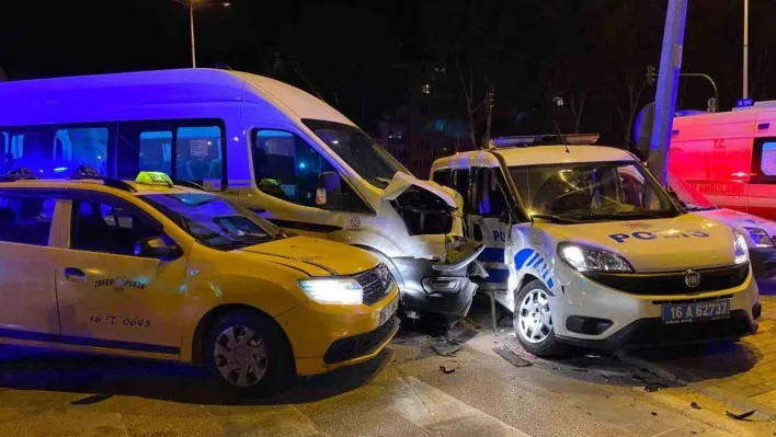 Bursa'da 3 aracın karıştığı kazada 3'ü polis 6 kişi yaralandı.