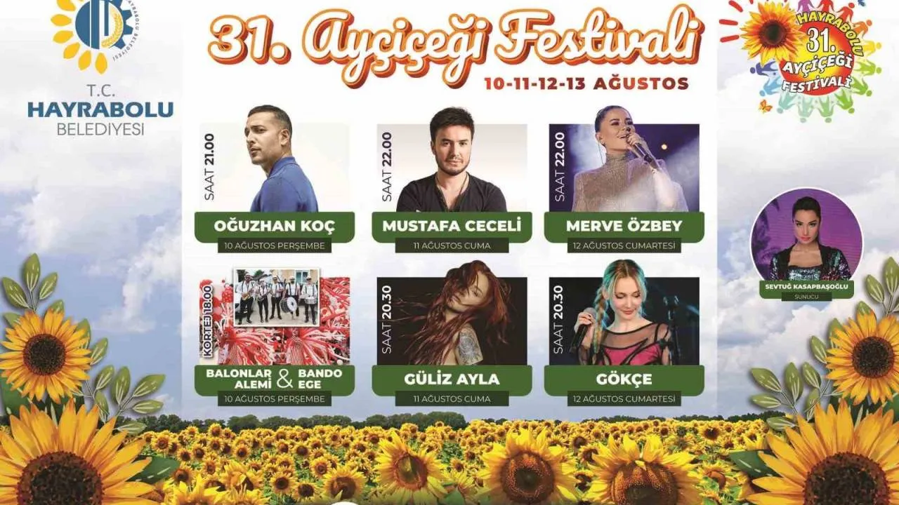 Tekirdağ Hayrabolu Belediyesi tarafından bu yıl 31’incisi düzenlenecek Ayçiçeği Festivali’nin sanatçıları belli oldu.