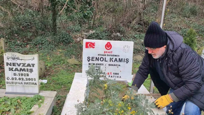 1987 yılının Harp Okulu mezunları, 34 yıl önce Şırnak'ta yaşanan çatışmada şehit düşen arkadaşları Şenol Kamış için Sakarya'nın Geyve ilçesindeki mezarına gelerek, dualarla yad etti.