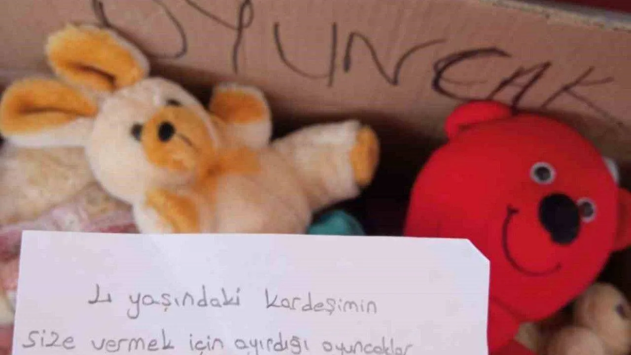 Kahramanmaraş merkezli depremlerin ardından tüm Türkiye tek yürek olurken, depremzedelerin yaralarını sarmak için vatandaşlar adeta seferber oldu. Ağır kış şartları sebebiyle hayatın zorlaştığı afet bölgesinde, depremzedeler için harekete geçen vatandaşlar, topladıkları atkıdan bereye, monttan sobaya kadar birçok temel ihtiyaç malzemesini tırlarla afet bölgesine gönderdi. Bu çerçevede Çağlayancerit Kaymakamlığına gönderilen koliden çıkan not ise görenleri duygulandırdı. İlçeye gönderilen koliler personeller tarafından türlerine göre ayrılıyor. En sevdiği oyuncağını depremzedeler için gönderen çocuklar, yazdığı notla da yürekleri ısıttı.
