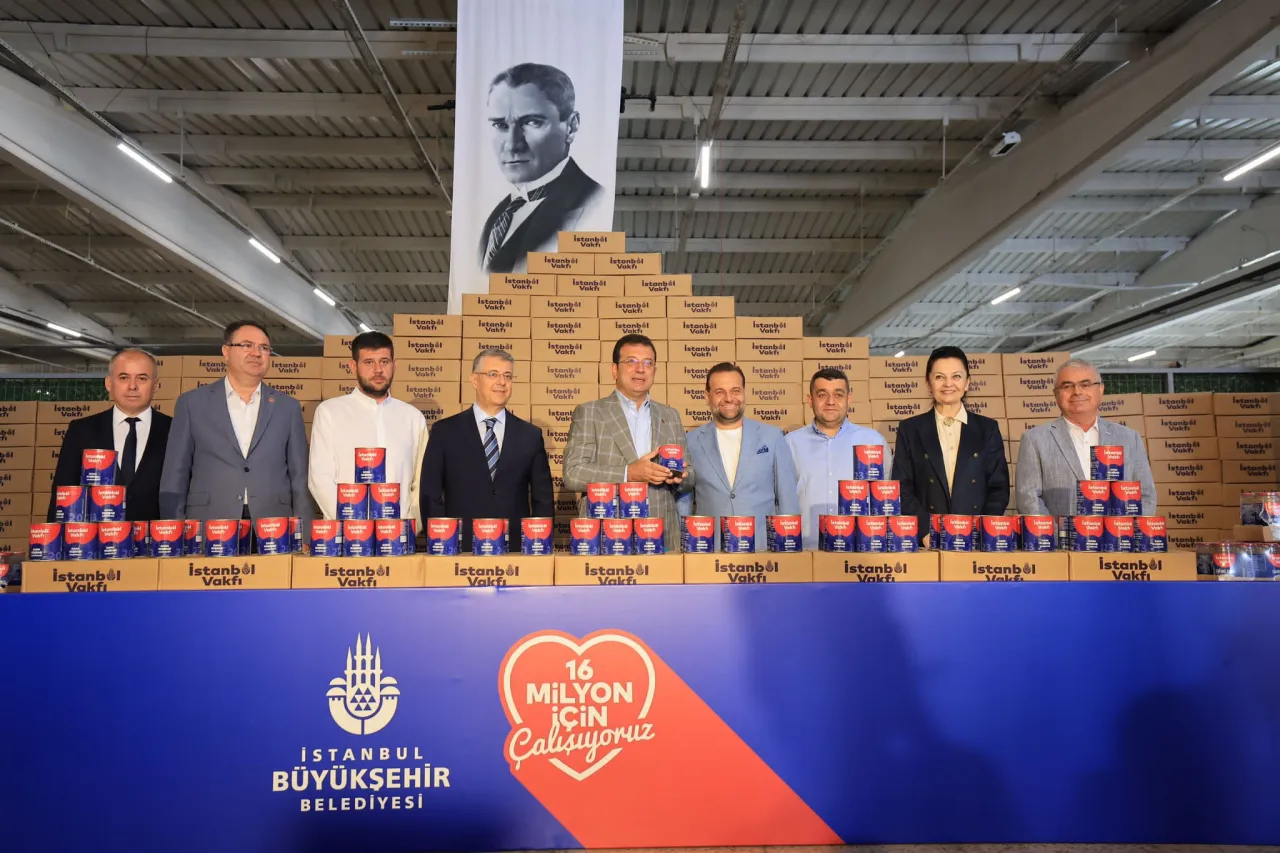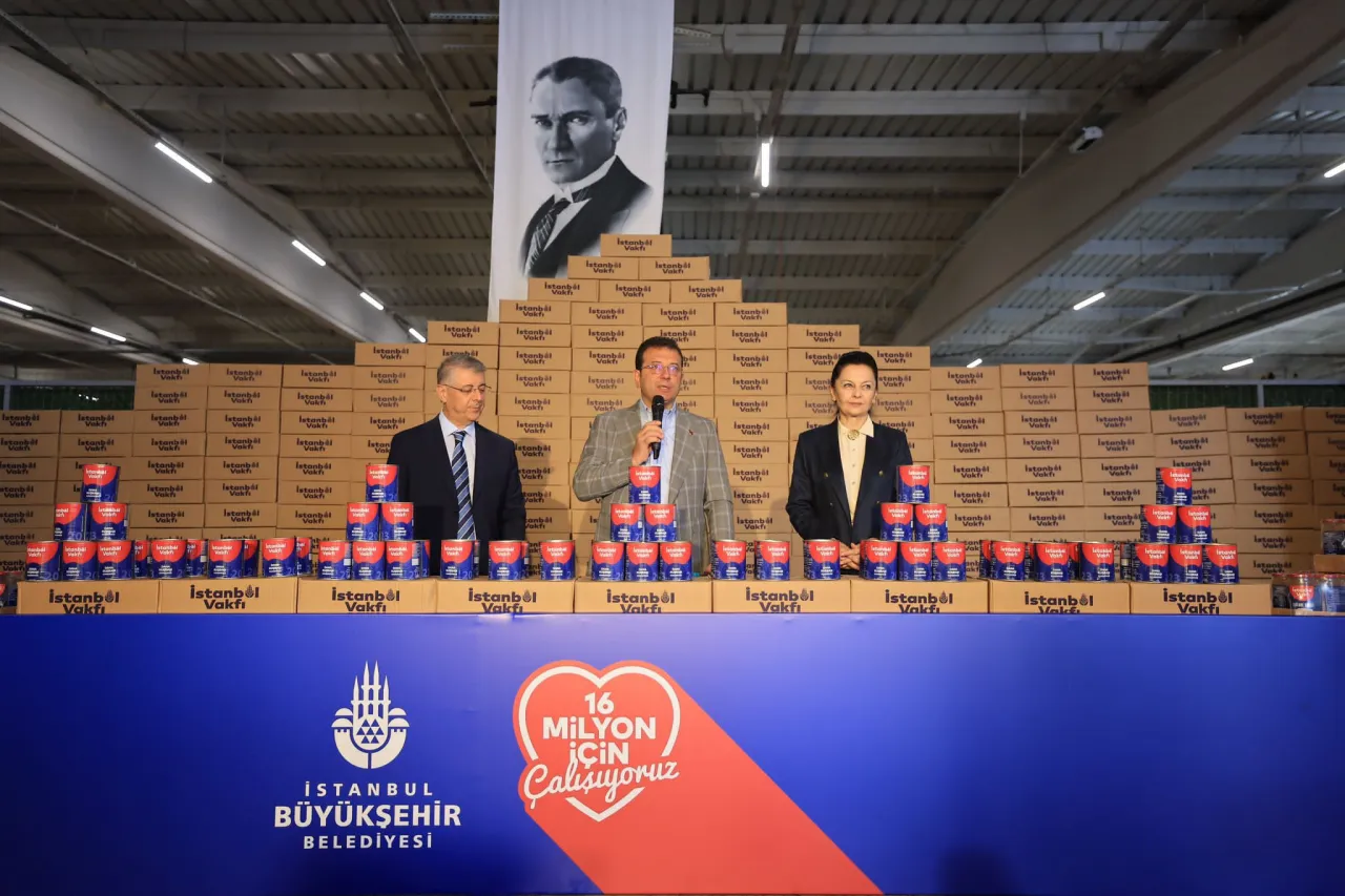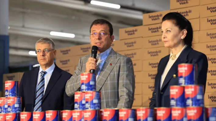 İBB Başkanı Ekrem İmamoğlu, İstanbul Vakfı aracılığıyla bu yıl 4'üncüsünü düzenledikleri kurban bağışından elde edilen konserveleri, 90 bin haneye ulaştırılmak üzere yola çıkardı.