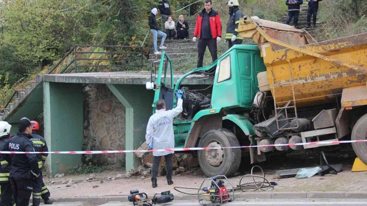 Kocaeli’de kontrolden çıkarak 70 metre istinat duvarına sürtünen, sonrasında beton merdivene çarpan kamyon sürücüsü hayatını kaybetti.