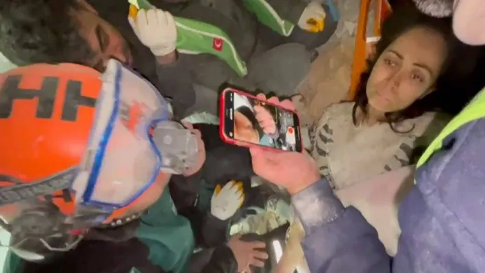 Hatay Antakya'da enkaz altından kurtarılan kadının ilk isteği eşinin sesini duymak oldu. Kurtarma ekipleri tarafından telefonla ulaşılan koca eşinin sağ salim kurtarıldığını öğrendi.
