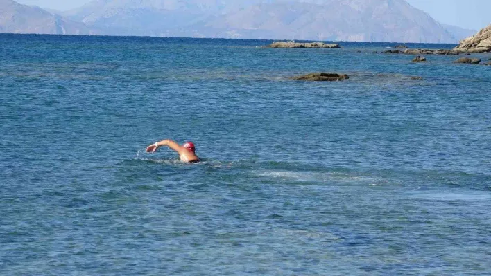 Rekortmen yüzücü Alper Sunaçoğlu, 19 Eylül Gaziler Günü dolayısıyla Çanakkale’nin Eceabat ilçesine bağlı Büyük Kemikli bölgesinden Gökçeada’ya yüzerek 8 saat 14 dakikada ulaştı.