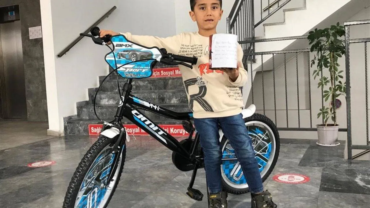 8 yaşındaki Poyraz bisiklet parasını deprem bölgesine yolladı