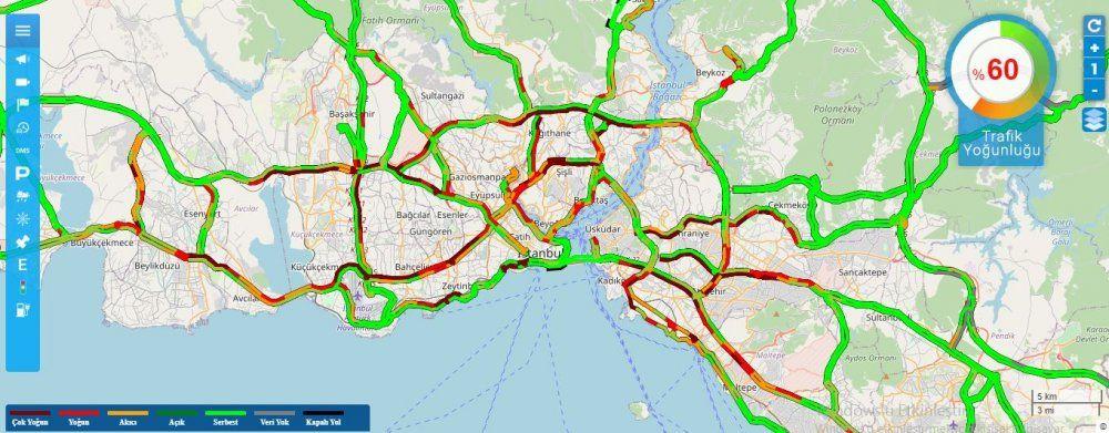 Tüm yurtta akşam saat 21.00'da başlayacak olan 80 saatlik sokağa çıkma kısıtlaması öncesi İstanbul'da trafik durma noktasına geldi. İBB Trafik uygulaması adeta kırmızıya dönerken, yoğunluk yüzde 60 seviyesine çıktı.