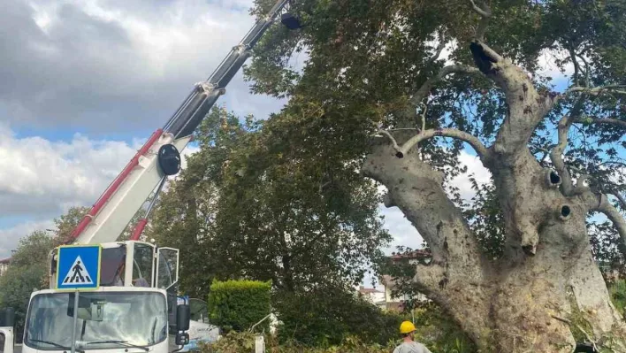 Darıca'da bulunan 850 yıllık tarihi çınar ağacı, Darıca Belediyesi ekipleri tarafından bakıma alındı.
