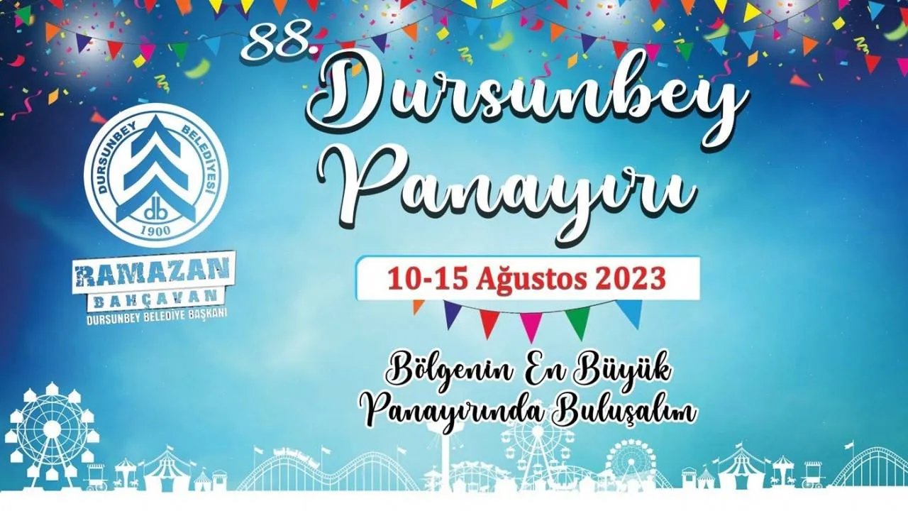 Bu yıl 88. si gerçekleşecek olan Dursunbey Panayırı 10 Ağustos Perşembe günü başlayacak, 15 Ağustos Salı günü ise son bulacak. Bir çok etkinliğinde yer alacağı Dursunbey emtia panayırı 6 gün sürecek. Yer satış ihalesi gerçekleşen panayırda boş satış alanı kalmadı. Bölgenin en büyük panayırı olan Dursunbey Panayırında bir çok sürpriz etkinlik te katılımcılar ile buluşacak.