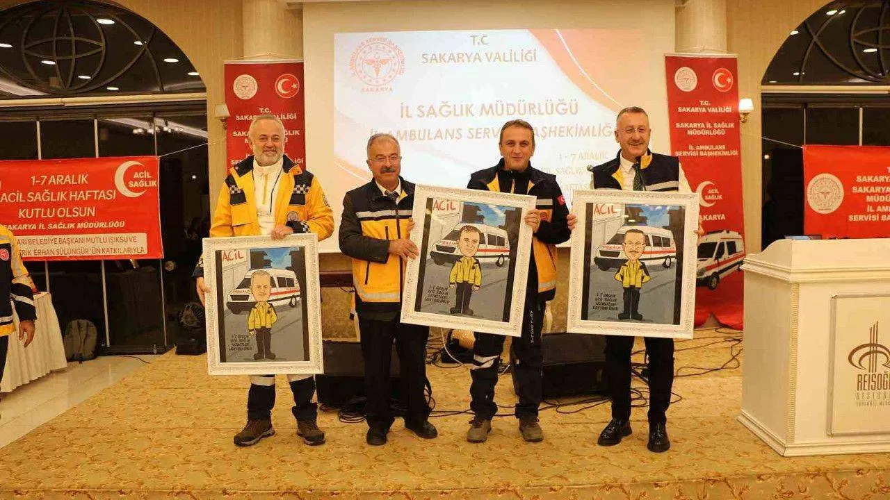 Adapazarı Belediye Başkanı Mutlu Işıksu da sağlık hizmetlerinin halka ulaştırılmasında canla başla çalışan ve acil sağlık hizmetlerini özveriyle yürüten tüm personele teşekkür ederek, haftalarını kutladı. İl Ambulans Servisi Başhekimliği tarafından Adapazarı Belediye Başkanı Mutlu Işıksu, İl Sağlık Müdürü Prof. Dr. Aziz Öğütlü, Sağlık Hizmetleri Başkanı Dr. Serdar Değirmenci’ye gecenin anısına karikatür çizimle hazırlanan kendi portrelerinin bulunduğu afiş tablolar hediye edildi. Program meslekte 20. yılını dolduran personele onur ve 125 acil sağlık hizmeti personeline teşekkür plaketinin verilmesinin ardından müzik dinletisiyle son buldu.