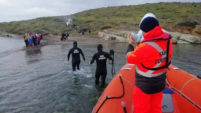 Adada mahsur kalan 28 düzensiz göçmen Sahil Güvenlik tarafından kurtarıldı