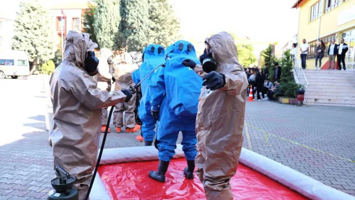 Sakarya İl Milli Eğitim Müdürlüğü koordinesinde AFAD ekipleri tarafından Karasu ilçesi Şehit Hasan Keleş Mesleki ve Teknik Anadolu Lisesi’nde yapılan tatbikatta, film sahnelerini aratmayan tatbikat gerçekleşti. 13 Ekim Uluslararası Afet Risklerinin Azaltılması günü etkinlikleri çerçevesinde kimyasal, biyolojik, radyolojik nükleer acil durumlara karşı neler yapılması gerektiğinin gösterildiği tatbikatı öğrenciler büyük ilgiyle izledi. Düzenlenen seminer sonrasında senaryo gereği sızıntı meydana gelen alanda bayılan bir öğrencinin yerini tespit eden ekipler, öğrenciyi bularak sedye ile arındırma kabinine taşıdı. Ekiplerin de havuzda arındırıldığı senaryo öğrencilerden büyük alkış aldı.