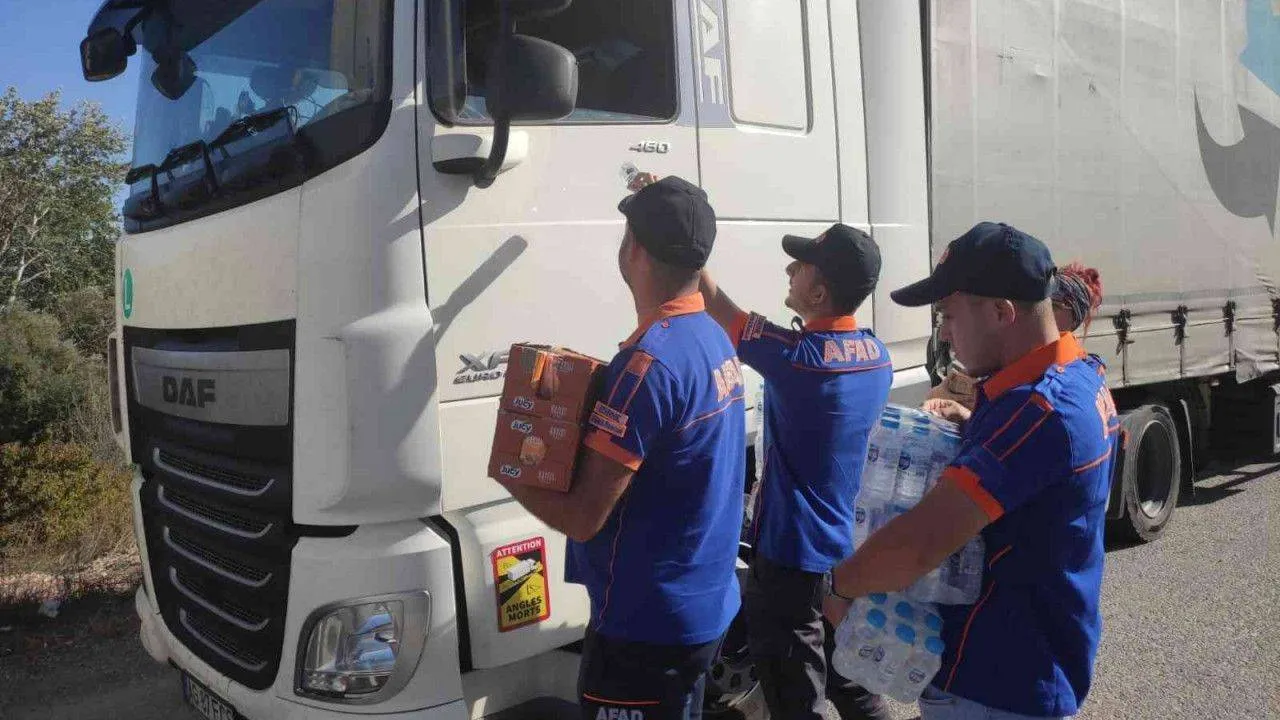 AFAD, uzun süredir kuyrukta bekleyen tır sürücülerine kumanya dağıttı