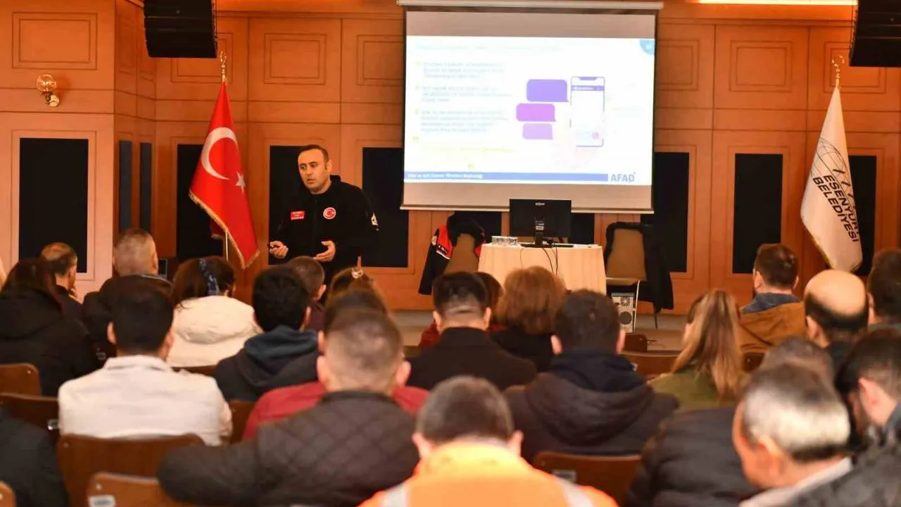 Depreme dirençli bir kent oluşturmak amacıyla çalışmalarına devam eden Esenyurt Belediyesi, verdiği Afet Bilinci Eğitimi ile vatandaşları bilgilendirmeye devam ediyor. Belediye bu kapsamda kendi bünyesindeki çalışanları da doğal afetlere karşı alınacak önlemler konusunda bilinçlendiriyor.