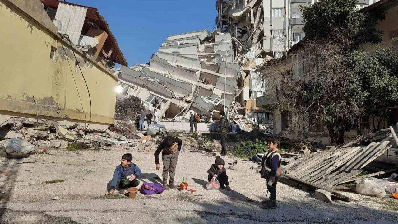 Hatay'da yıkılan binalar arasında çocukların oyunu görenleri duygulandırdı.