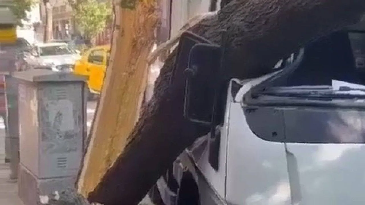 Bursa’da kırılan ağaç, seyir halindeki bir kamyonetin üzerine devrildi. Olayda can kaybı yaşanmazken, kamyonette maddi hasar meydana geldi.
