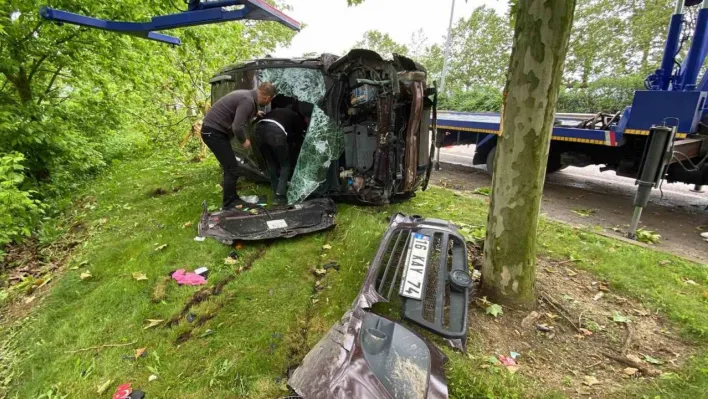 Kocaeli'nin İzmit ilçesinde yol kenarındaki ağaca çarpan hafif ticari araç ağaçlık alanda yan yatarak durabildi. Kazada yaralanan sürücü hastaneye kaldırıldı.