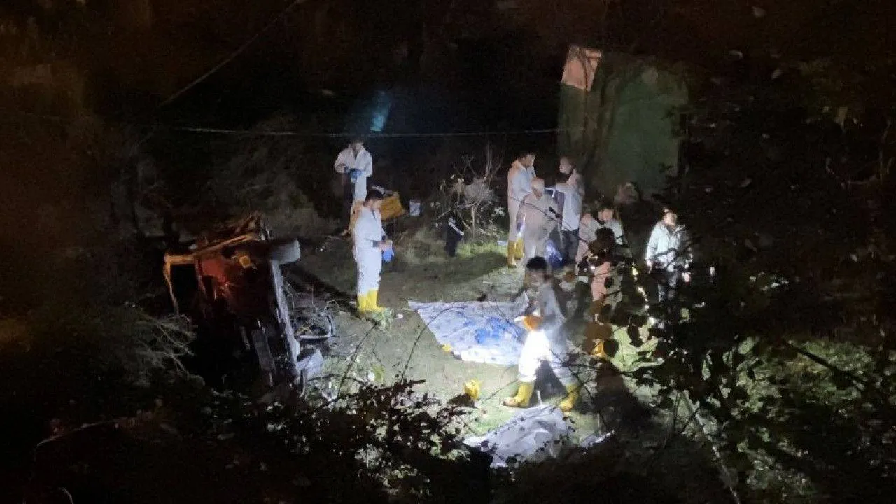 Ağaçlık alana uçan otomobil alev alev yandı: 1'i polis 2 kişi hayatını kaybetti