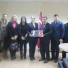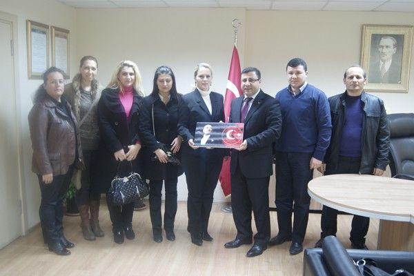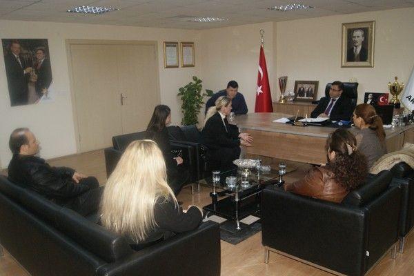 İlçe Başkanı Metin Karakaş ziyaretçilerini makamında ağırlarken kendisine İlçe Başkan Yardımcıları Aydın Karabina ve Alparslan Çalış’ta eşlik etti.