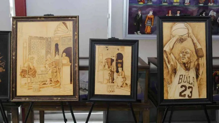 Kocaeli'nin Gölcük ilçesinde boya kullanılmadan, tamamen ahşap yakma tekniği kullanılarak yapılan resimlerden oluşan sergi açıldı.