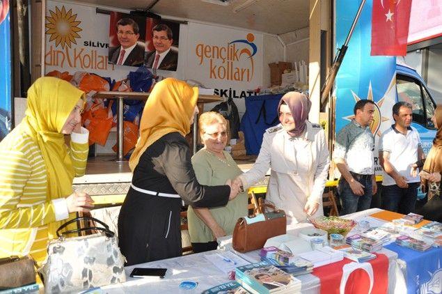 Gün boyu süren programlarda Milletvekili Adaylarını tanıtarak, 13 yıllık AK Parti İktidarında gerçekleşen projeleri anlatan broşürler dağıtarak vatandaşlarla sohbet ettiler. Belediye Meclis Üyesi Tuğba Alkaya’nın sorumluluğunda gerçekleşen programlarda Milletvekili Adayı Sayan’a, AK Parti Silivri İlçe Başkanı Dilek Demiral, İlçe Kadın Kolları Başkanı Nuray Albayrak ve Yönetimi eşlik etti.
