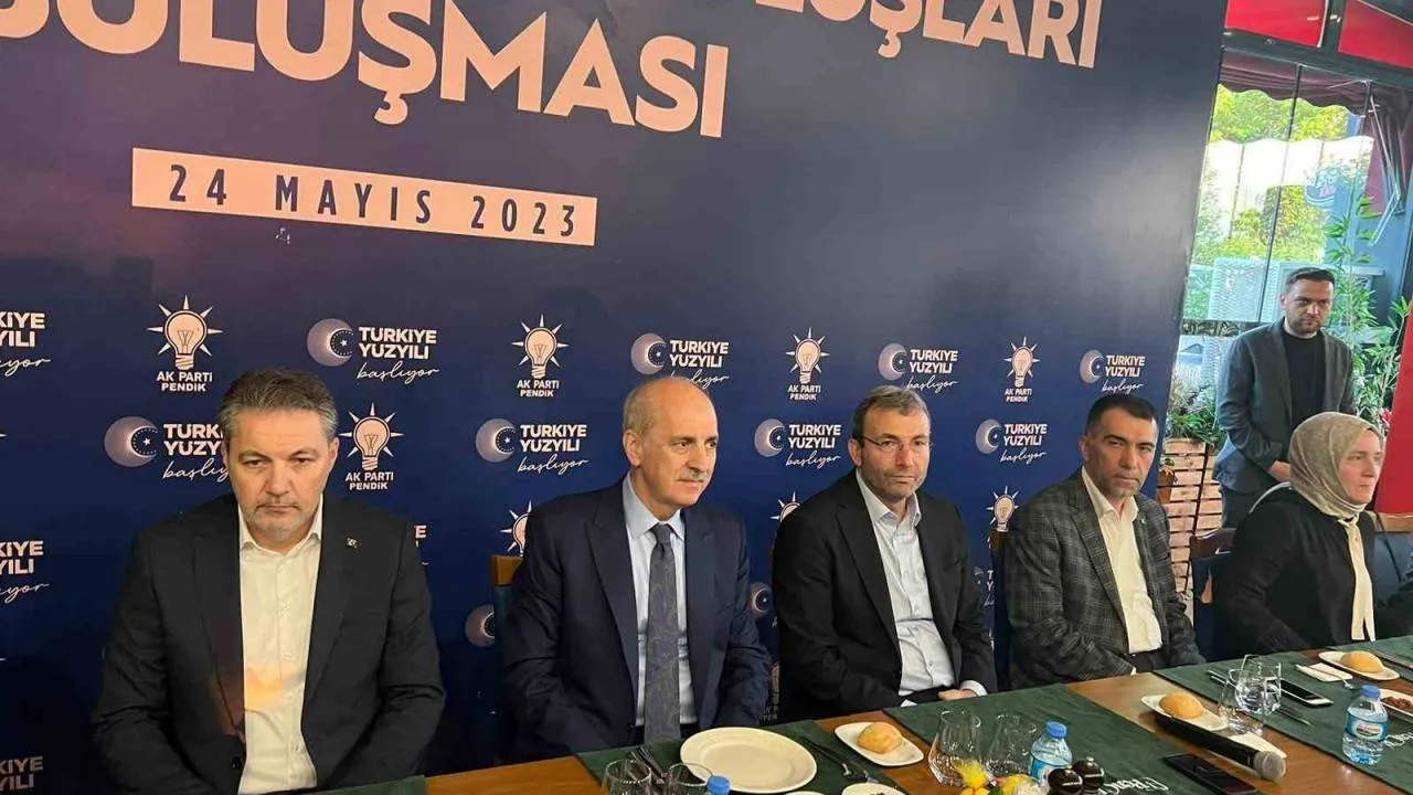 AK Parti Genel Başkanvekili Numan Kurtulmuş, Pendik’te STK temsilcileri ve kanaat önderleriyle bir araya geldi. 28 Mayıs’taki seçimin sadece gelecek 5 yılın yöneticisini belirleyecek bir seçim olmanın ötesinde Türkiye’nin önümüzdeki 100 yılını belirleyecek bir seçim olduğunu vurgulayan Kurtulmuş, "Bu seçimde her içeride hem dışarıda, cümle alem bir araya gelip, ’Recep Tayyip Erdoğan’ı artık bu seçimde indireceğiz, onun yerine başka bir yönetim gelecek’ diyorlar” ifadelerini kullandı.