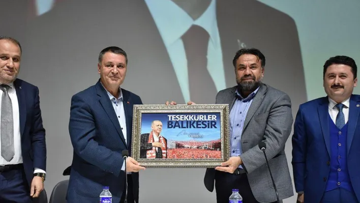 Önemli olan, 2023’te seçim geldiğinde, onun akşamı veya ertesi günü bu mitingin ardından yaşadığımız mutluluğu, gönül rahatlığını yaşayabilelim. Cumhurbaşkanımız tekrar seçilmiş olsun. AK Parti milletvekilleri mecliste yeterli sayıya ulaşmış olsun. Türkiye’mizin geleceğinde, Türkiye Yüzyılı’nda 2023, 2053 ve 2071 hedeflerine yürümesi noktasında gereken yatırımları da yapabilelim. Elhamdülillah miting bu noktada bizim için hem çalışma imkanı, hem de çalışırken yaptığımız işlerin sağlıklı yürümesini görmek açısından çok büyük bir kazanım oldu. Güzel bir çalışma neticesinde mitingimizi gerçekleştirdik. Cumhurbaşkanımızı Balıkesir’imize yakışan, yaraşır bir şekilde; hem AK Teşkilatlar olarak, hem de Balıkesirliler olarak karşıladık, ağırladık ve hasretimizi giderdik. Bunda herkesin alın teri, emeği var. Ben hepinize gönülden teşekkür ediyorum. Bu ziyaretlerimizi de teşekkür ziyareti adı altında yapıyoruz. Bugüne anı olsun diye teşkilatımıza bir tablo hediye ediyoruz. Bu konuda sizlere, sizler nezdinde de tüm teşkilat mensuplarımıza, hemşehrilerimize çok çok teşekkür ediyorum” dedi.