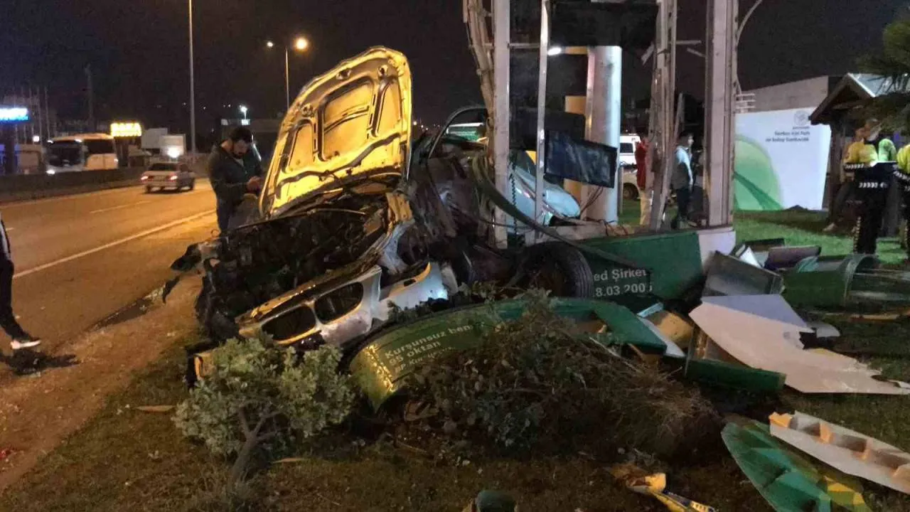 Akaryakıt istasyonunun fiyat tabelasına çarpan otomobilin sürücüsü yaralandı
