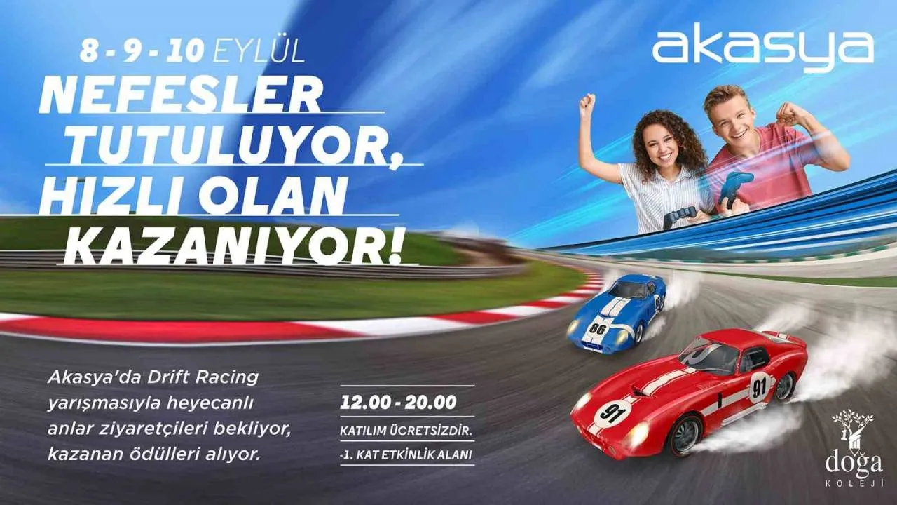 Akasya’da 8-10 Eylül tarihleri arasında kurulacak Drift Racing pisti ile çocuklar ve aileleri elektrikli araba yarışı ile rakiplerine karşı kıyasıya mücadele edeceği heyecanlı anlar yaşayacak. Eğlenceli etkinlikte günün en iyi süre skorunu tutturanları sürprizler bekliyor.