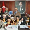 Sudi Özkan Teknik ve Endüstri Meslek Lisesi öğrencilerinin el işçiliği ile yapmış oldukları deri cüzdan, anahtarlık gibi ürünleri dikkatle inceleyen Başkan Akgün, “Halk Akademileri bünyesinde başlatılan ev hanımlarını tüketicilikten üreticiliğe sevk eden proje kapsamında başlattığımız çorapçılık işine, dericilik branşnıda ekleyebiliriz” şeklinde konuştu.