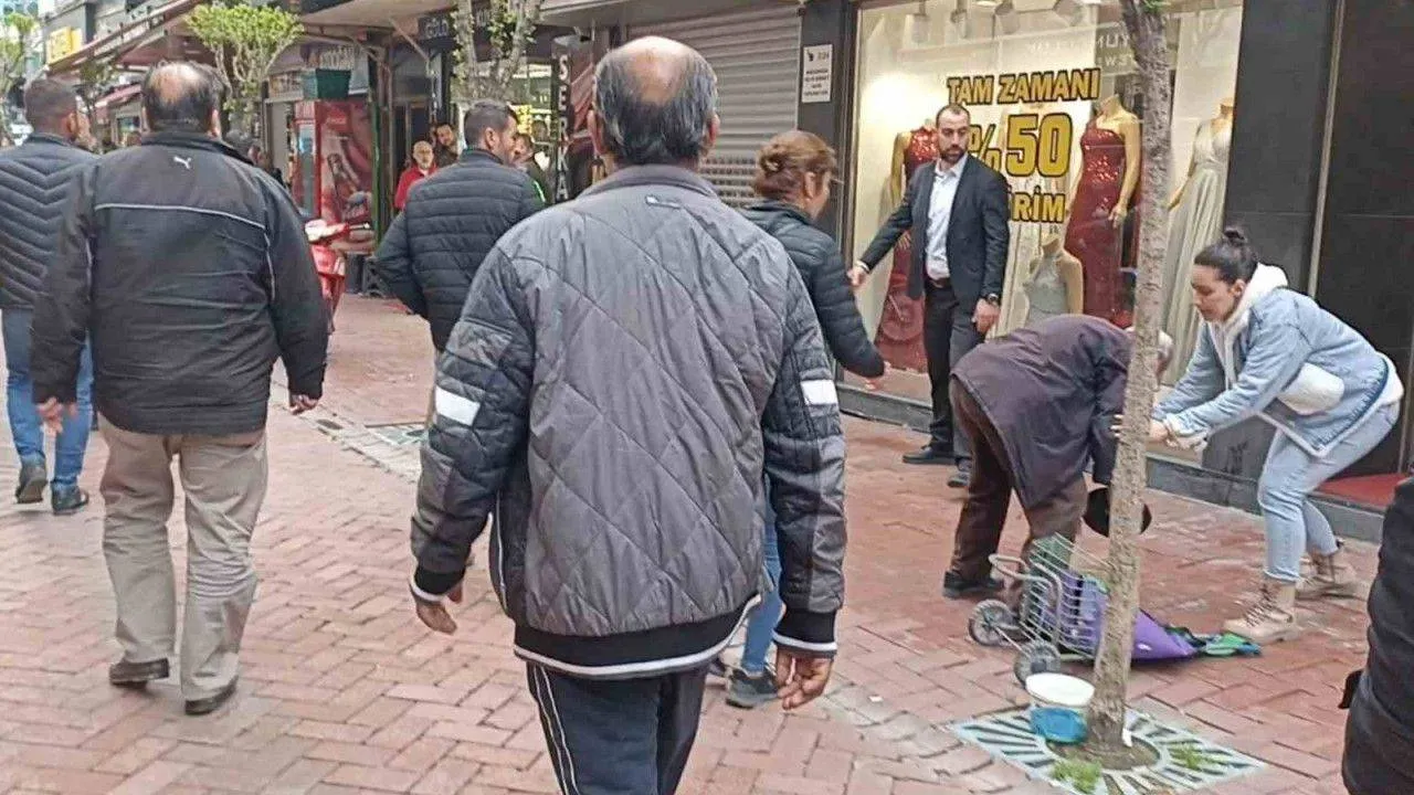 Balıkesir’in Edremit ilçesinde akıl hastası olduğu iddia edilen genç pazarın kurulduğu Kuyumcular Çarşısı’nda birçok kişiye saldırdı. O anlar ise kameraya yansıdı.