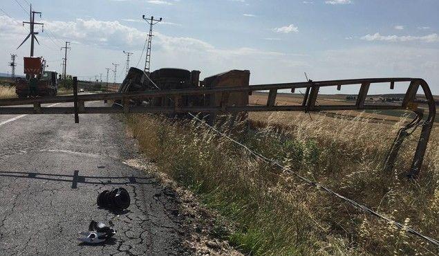 Akören yolu üzerinde meydana gelen kazada devrilen hafriyat kamyonun sürücüsü yaralandı.