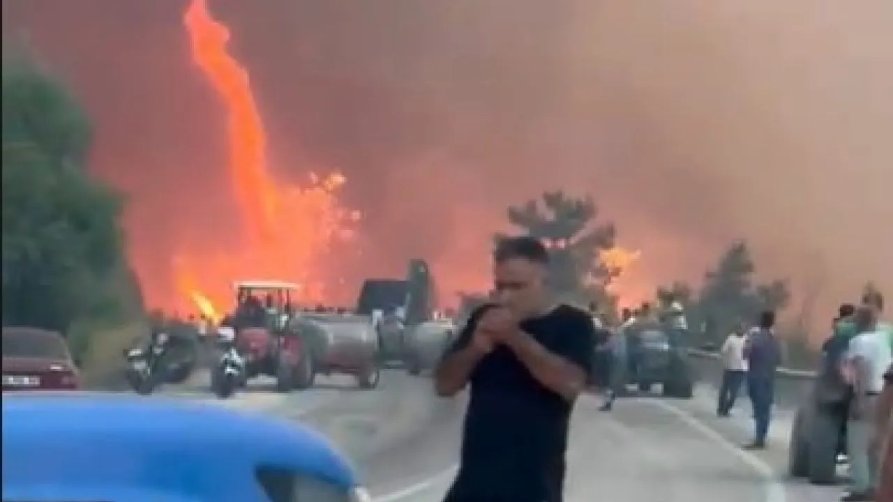 Karayolu üzerinde yolu saran alevler sebebiyle yangına müdahale etmek için araçlarıyla gelen vatandaşlar araçlarını alevlerden zor kaçırdı. Tüm bunlar yaşanırken karayolunu saran alevlere rağmen sigarasını yakan bir kişi ise bu kadarına da pes dedirtti.