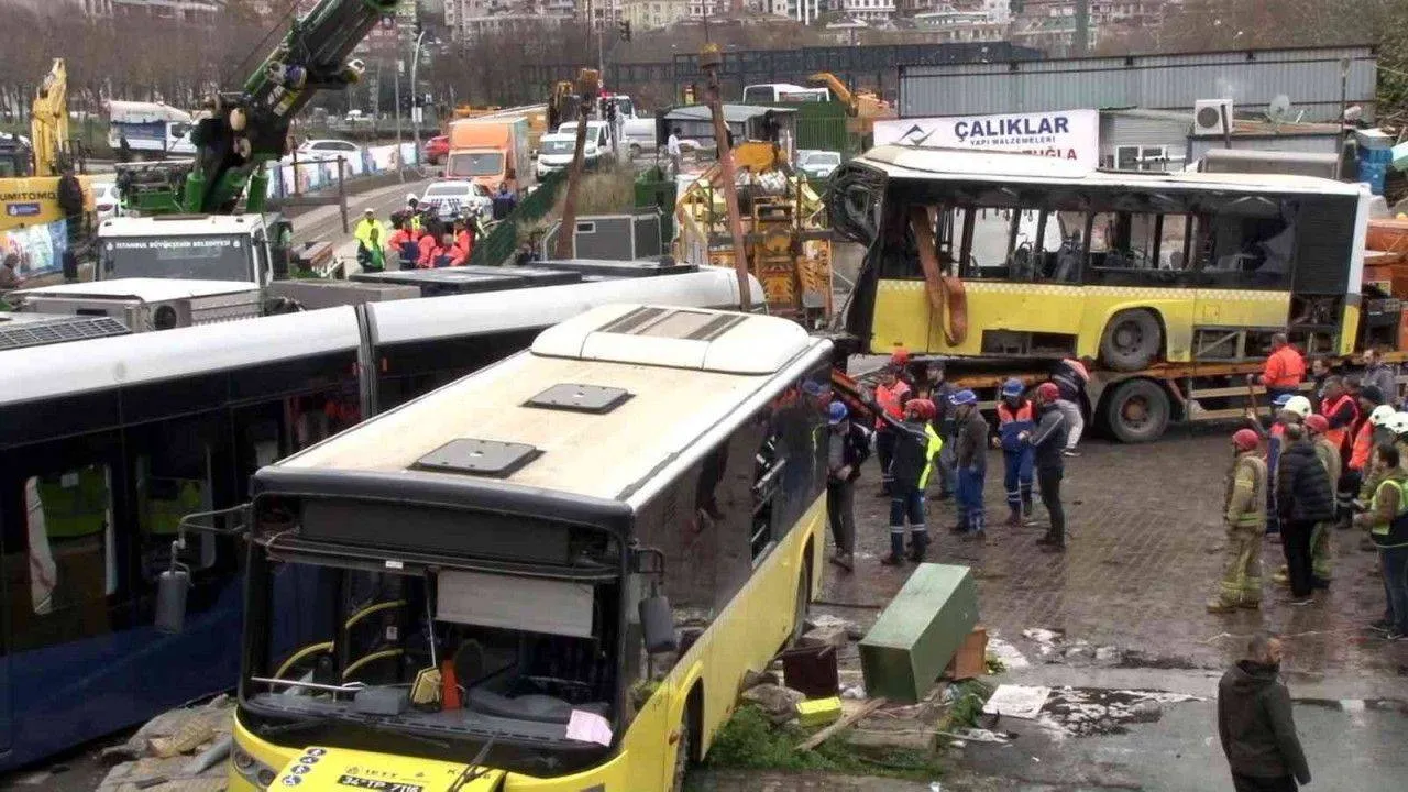 Alibeyköy'de 33 kişinin yaralandığı kazanın ardından otobüsü ve tramvayı kaldırma çalışması sürüyor