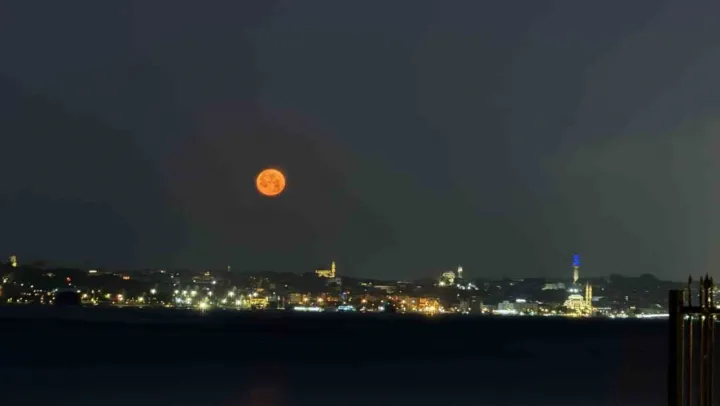 'Çilek Dolunayı' İstanbul Avrupa Yakası'ndan böyle görüntülendi