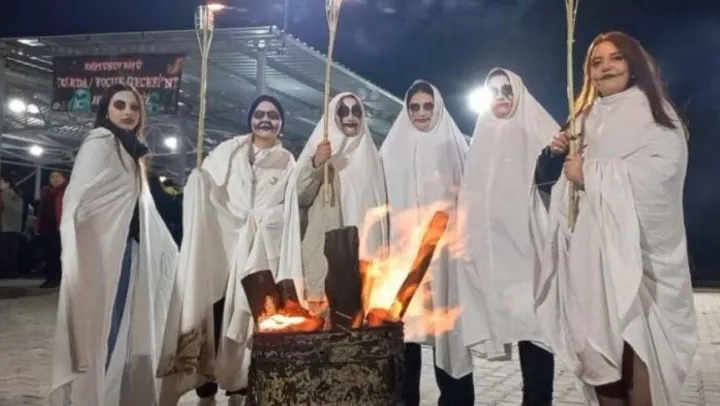 'Koleda' gecesinde korkunç kıyafetler giyip vatandaşları korkuttular