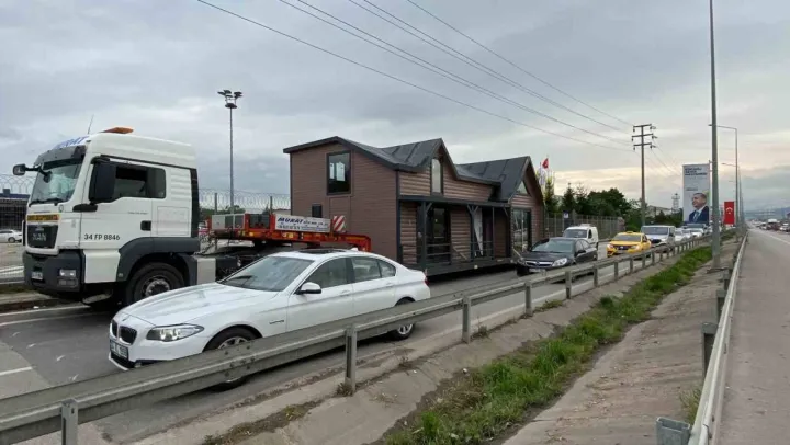 Kocaeli trafiği bugün alışık olmadığı manzarayla karşılaştı. İstanbul Tarabya'ya teslim edilmek üzere yola çıkan prefabrik ev yüklü tır, bazı noktalarda zorluk yaşadı. 60 metrekare büyüklüğündeki prefabrik, hacminden dolayı adeta 'yürüyen ev' görüntüsü verirken, yan yola girdikten sonra ilerlemekte güçlük çekti. Kartepe ilçesi D-100 yan yoldaki park halindeki araçlardan dolayı tır yoluna devam edemedi. Park halindeki araçlar kaldırılıncaya kadar prefabrik yüklü tır bekleyince, trafikte de yoğunluk yaşandı.