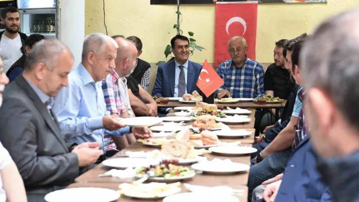 Güzel davetleri için Reyhan pazarcı esnafına teşekkür eden Osmangazi Belediye Başkanı Mustafa Dündar, 'Biz Osmangazi ilçemizde sürekli ziyaretler gerçekleştiriyoruz. Sürekli vatandaşlarımız ve esnafımızın yanındayız. Çarşı bizim ekonomimizin can damarı. Tarihi çarşılarımızı yeniden cazibe haline getirmek için birçok çalışma yapıyoruz. Esnafımızın talep ve ihtiyaçlarına göre çalışmalarımızı sürdüreceğiz. Reyhan pazarcı esnafımız da bizi çok güzel ağırladı. Tuzpazarı Muhtarımız Ferruh Sevimgil'in 15 yıl önce yine burada çektirdiğimiz fotoğrafı göstermesiyle hatırlarımız yeniden canlandı. Yıllardır hep birlikte güzel bir gönül birliğimiz var. Birliğimiz daim olsun.' dedi.