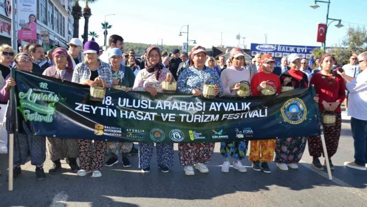 Balıkesir'in Ayvalık ilçesinde, 18. Ayvalık Uluslararası Zeytin Hasat Festivali 'Zeytine Minnet' yürüyüşü ile başladı.