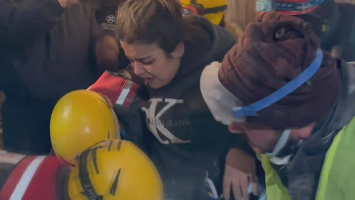 Kahramanmaraş'ta meydana gelen depremlerde çöken bir binada kurtarma çalışması yapan ekipler, 22 yaşındaki Leyla Akçam'ı sağ olarak çıkardı. Enkazdan ayakta çıkan Leyla 'başım dönüyor' diyerek annesini sordu.